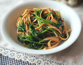 - 3. 烧一锅水,把豆皮丝放入焯水后捞出。