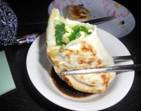 - 4. 然后擀好面片,中间厚点,两遍薄点,然后放入韭菜陷,像包包子一样合上,在轻轻按一下就可以下锅了。