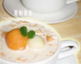 用挖球器把木瓜挖成球。挖球器居家必备哈,做家庭果盘必备!