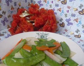 最后加入荷兰豆一起炒熟,加盐调味就可以。
