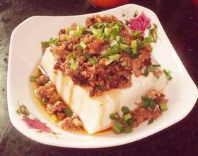 - 9. 炒好的肉末铺在嫩豆腐上面。