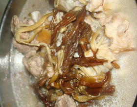 煮沸后撇去浮沫,放姜片和料酒,小火炖半个小时。