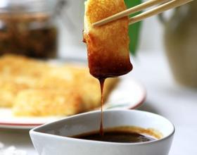 小贴士 1、糯米与米的比例——3:1的比例正好软硬合适; 2、蒸米饭的水量——不宜多,没过米刚刚好; 3、舂糍粑——不用舂得太烂,有点不完整的米粒口感才好; 4、糍粑整形——借助模具更容易,冷冻才好切整齐; 5、煎糍粑——火用中火,蛋皮一成,立即翻面,煎两面黄; 6、蘸红糖——加少许水才能化成红糖浆,水多成了红糖水就裹不上糍粑身了。