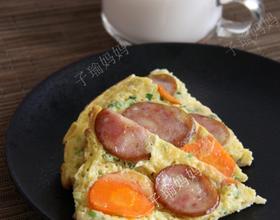 1、鸡蛋建议每天每人1个即可,胆固醇偏高的,可考虑把蛋黄去掉再制作;2、这是用的火腿肠是家庭自制的,朋友送我们的,大家可以选择培根或者比较好的火腿肠;3、记得配上牛奶一起吃哦,营养更丰富;4、对了,在煎蛋饼的时候是一直保持小火的.不要开大火哦。
