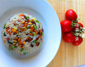 倒入所有的蔬菜丁翻炒,大火烧一会,蒸发掉一些汤汁。