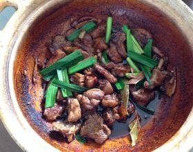砂锅内倒入两圈油,让其均匀铺满锅底,然后放入姜片约十片也是铺满锅底即可,放入准备好的大料(即陈皮桂皮等)和炒好的鸭肉,再倒入啤酒盖过鸭肉,就可用中大火并盖上锅盖收汁。