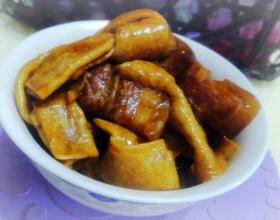 - 4. 锅中放少许油,放入五花肉小火煸炒。
