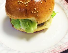 面包分开放上烤好的肉饼
