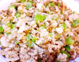 拿出后用水冲洗一下,控干水后用手轻轻攥成豆腐渣状