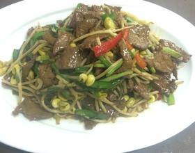 黄豆芽喇油,油温稍高。