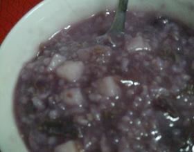 注意,要时常的搅拌,山药和紫薯切成粒粒,不要太大,也不要太小。趁热吃,夏天的话可以放冰箱,喝冰粥也是非常不错的。
