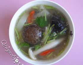 - 4. 木耳泡发洗净;香菇泡开洗净,再泡水;海参和香菇可切可不切,随意。