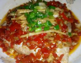 鱼段放入铺上葱姜丝的盘里,倒入少许蒸鱼鼓油,锅烧水开,放入锅里,蒸上十五分钟,取出倒出多的水,在倒上蒸鱼鼓油,撒上葱花,姜丝,在浇上热油,即成。
