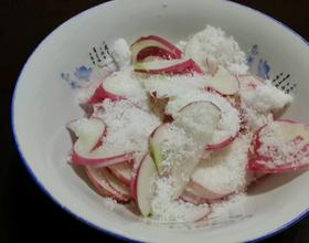 2.加糖后搅拌均匀,入味后,再在表面撒上一层糖