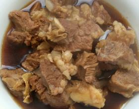 这时砂锅放凉水把牛肉块下入水摸过肉。