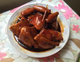 - 4. 将乳鸽放入锅中焖煮。当焖煮时, 调至中火。小心地时不时将乳鸽翻面,以保证红烧汁均勻地滲入乳鸽当中。将乳鸽焖煮25分钟,直至乳鸽完全熟透。