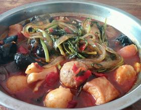 那些鱼肉丸,海带,黑木耳煮熟,可以加入小白菜,蒿子杆,一起煮,煮熟就可以盛盘里。