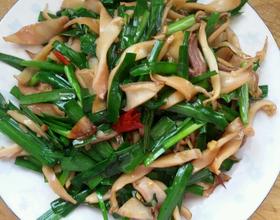 韭菜炒墨鱼。的做法