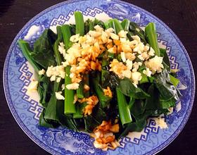 断青后把芥兰上碟码好,撒上蒜蓉。