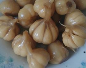 晒好了放容器里!可以熬水了!糖,醋,水,把水烧开,用筷子把糖搅化!(可以以自己的口味加糖,醋)熬好的水必须冷凉!把倒容器里,水要淹没蒜!封口就好了!