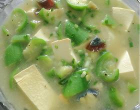 炒锅倒少量油.大火烧至八成热时.下入丝瓜爆炒.炒至丝瓜变软时加入清水.盐.和匀.然后下入皮蛋、豆腐,加热至沸腾时转小火,再煮2分钟左右,加少量鸡精、黑胡椒粉调味,搅拌均匀即可关火。