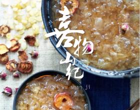 大火加入撕碎银耳煮沸后,调小火炖半小时,加入泡发好的皂角米,小火炖一小时后,加入山楂玫瑰,然后起锅加入玫瑰红糖。