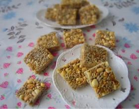 现在天气暖和,酥糖冷却慢,慢慢做不要紧。天冷整好型后及时切块,完全冷却了就不好切了。果仁换成核桃杏仁芝麻……都可以,前提是要先烤熟。