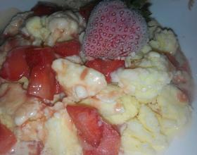 牛奶煮热,放凉了加入打发好的鸡蛋里