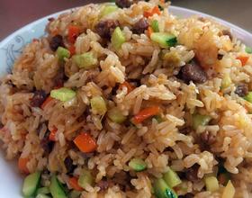 米饭用冷藏隔夜饭最好,如果没有,就现煮米饭时少放点水,这样炒的饭才会粒粒分明,有口感…另外黄瓜选择最后放是为了色泽和能吃到更原味清新的感觉…