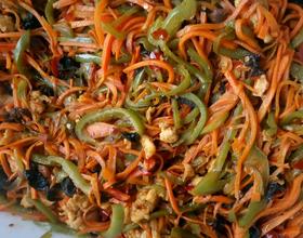 将胡萝卜,柿子椒洗净,切成丝