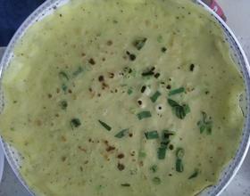 锅内放入一点点的油,把锅一圈弄油亮就可以了,加入一勺的刚刚弄好的面糊,放小火快速转动锅,转圆就可以了,面煎好后翻另一面,时间整个一分半钟就可以了!