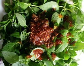 把所有的辅料放在一个小碗中做成碗汁浇在荆芥上即可。