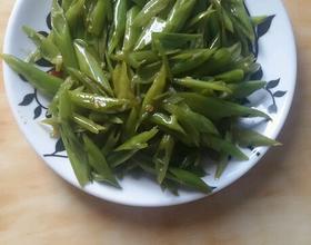 剪一个干的红辣椒,放少许白醋,少许料酒,少许香油,再放一点点的蚝油