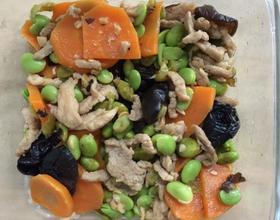 然后炒毛豆,接着放胡萝卜木耳,然后一起炒一下