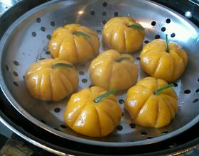 再蒸熟,把穤米粉,糖,南瓜和成面团