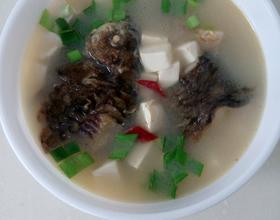 加入豆腐,大火煮开转小火炖,直到豆腐有蜂窝,加青蒜关火出锅。