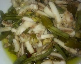 将锅里倒油,烧热,将姜蒜泡椒炒出香味,倒入鱿鱼须,炒熟后加鸡精花椒粉即可。