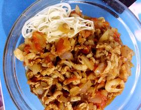 准备好材料,洋葱番茄切丁,五花肉切丝,姜也切成丝