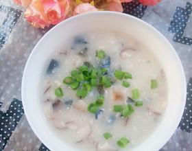 - 11. 关火,盛出香菇皮蛋瘦肉粥加入葱花即可