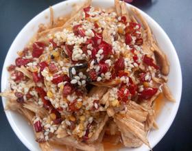 - 6. 将烧好的油倒入辣椒白芝麻碗里,