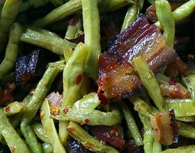 将豆角放入炒熟,再将炒熟的腊肉放入