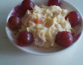 土豆切块,胡萝卜切丁和鸡蛋一起蒸熟