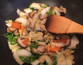 洗净娃娃菜,菜帮切片,菜叶切丝