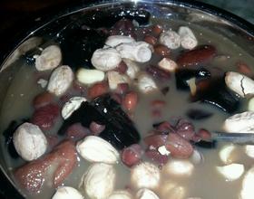 - 2. 放到高压锅压熟。最好先泡三个小时在压这样豆烂的快才好吃。煮好放冷水冲沥干水放碗里放入冰箱。想吃烧仙草在和凉粉红豆一起就可以了。