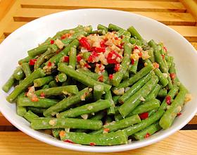 把沥干水的豆角码入盘中,淋上蒜蓉腐乳汁搅拌均匀,10分钟后即可来吃