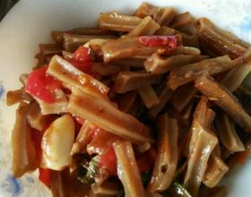 热锅凉油,下辣椒大蒜,盐,翻炒