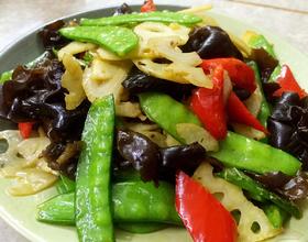 绰水的时候,我把荷兰豆和莲藕木耳分开来绰水,因为荷兰豆绰水时间可以短些…保持荷兰豆的脆爽的口感,另外荷兰豆也可用其他蔬菜代替,比如西兰花,豆角等等…