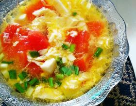 豆腐西红柿切小丁、鸡蛋打匀待用