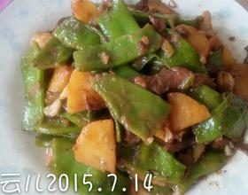 - 3. 用底油把洗净搿段的豆角放入锅中,继续煸炒一分钟左右