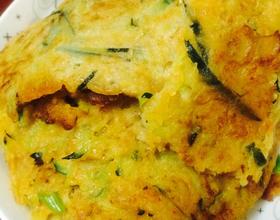 放入两三个鸡蛋 和香葱 加入面粉 搅拌均匀 可以加点水